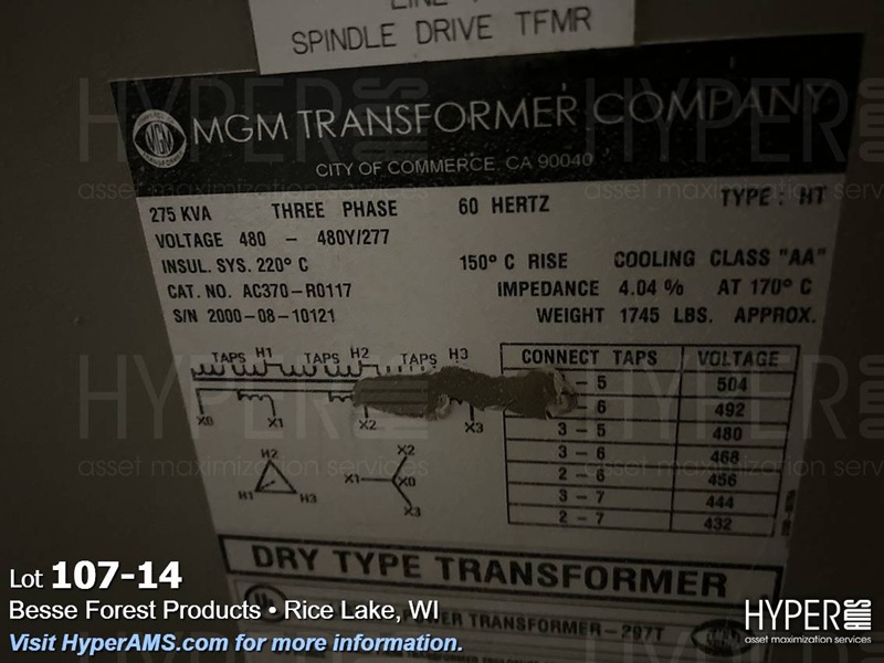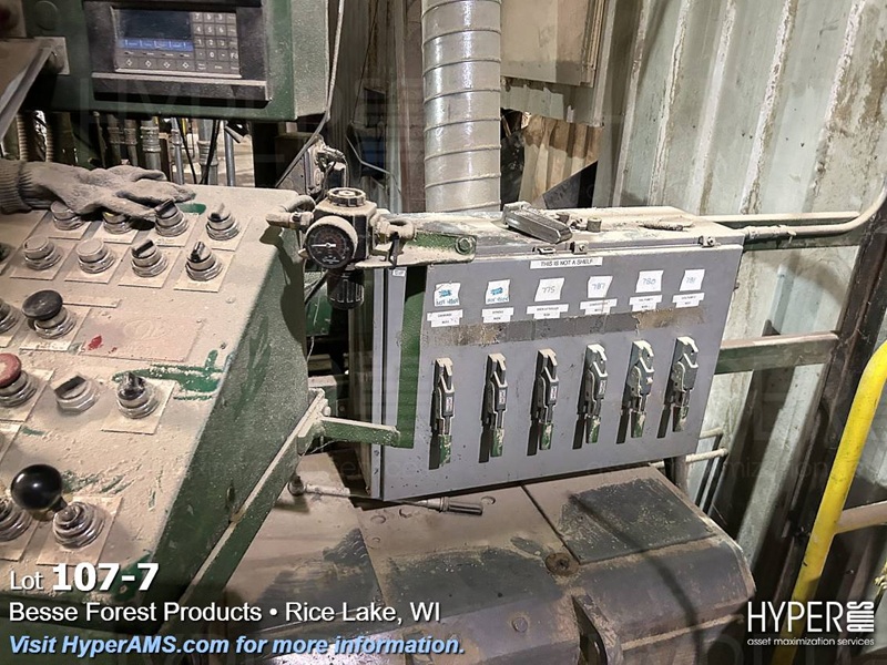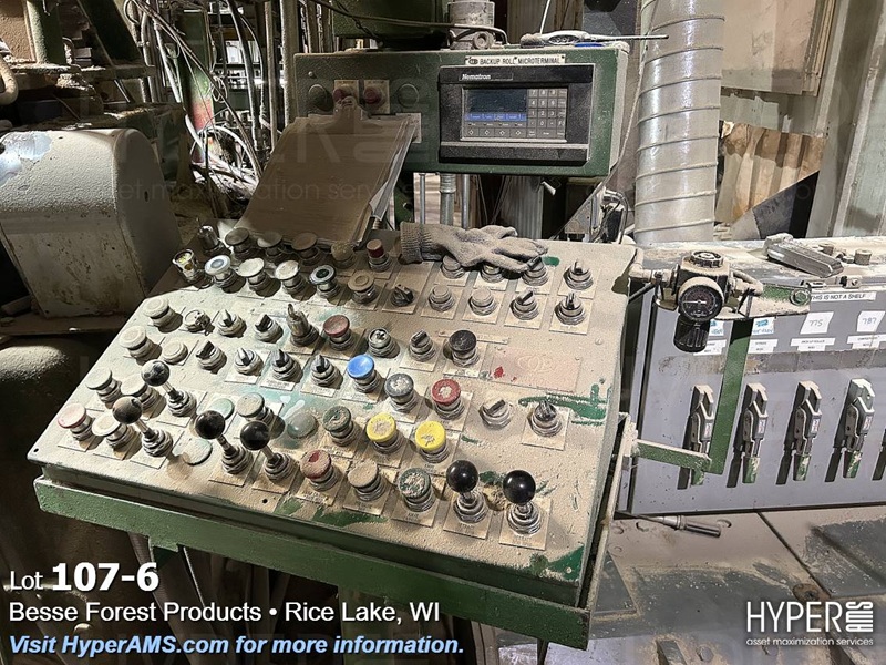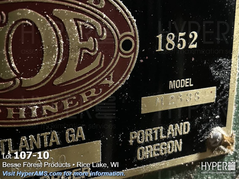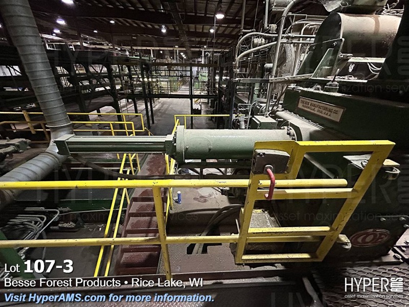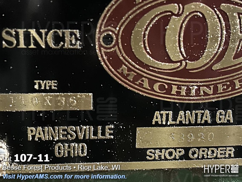 COE 110" VENEER LATHE MODEL 263, 5" SPINDLES WITH STEADY RESTS, C4S BACKUP ROLL, GEO CHARGER, SPINDLE DRIVE MOTOR REBUILT 2019, CONTROL UPDATED 2019, 2016 MERRITT CARRIAGE DRIVE UPDATE (SUBJECT TO THE BULK BID ON LOT 100)