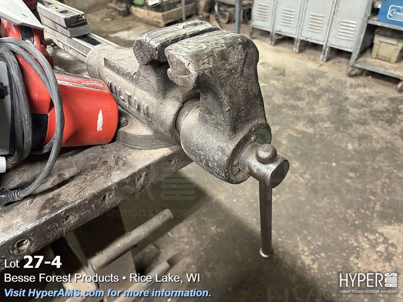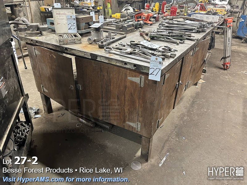 STEEL TABLE 5' X 14' WITH TWO BENCH VISES