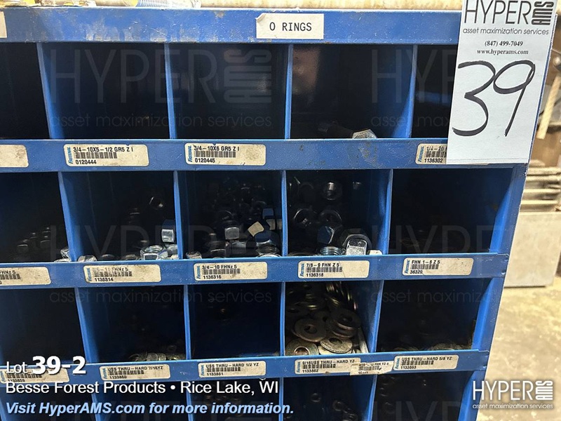 PARTS SHELF WITH WASHER, BOLTS, AND NUTS