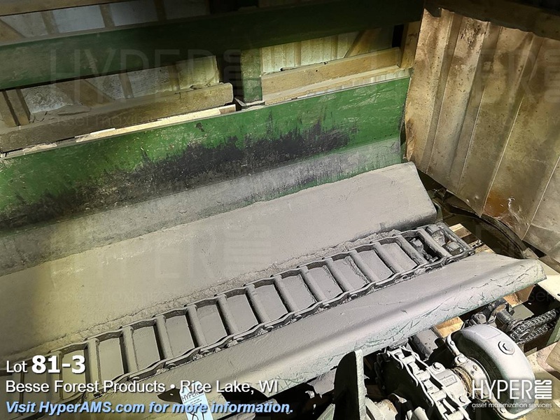 INFEED CONVEYOR 110 CHAIN, APPX 29' LONG WITH (3) HOUR GLASS ROLLERS AND HYDRAULIC UNIT