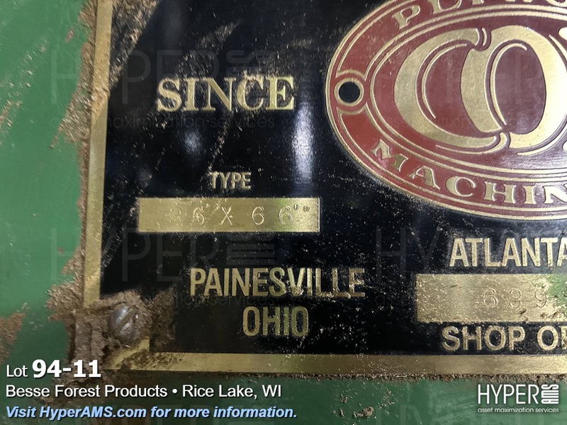 COE MODEL 263 66" VENEER LATHE, 5" SPINDLE, GEO CHARGER, (7) SPARE KNIVES, CARTADE DRIVE UPDATED TO A MERRITT (SUBJECT TO THE BULK BID ON LOT 92)