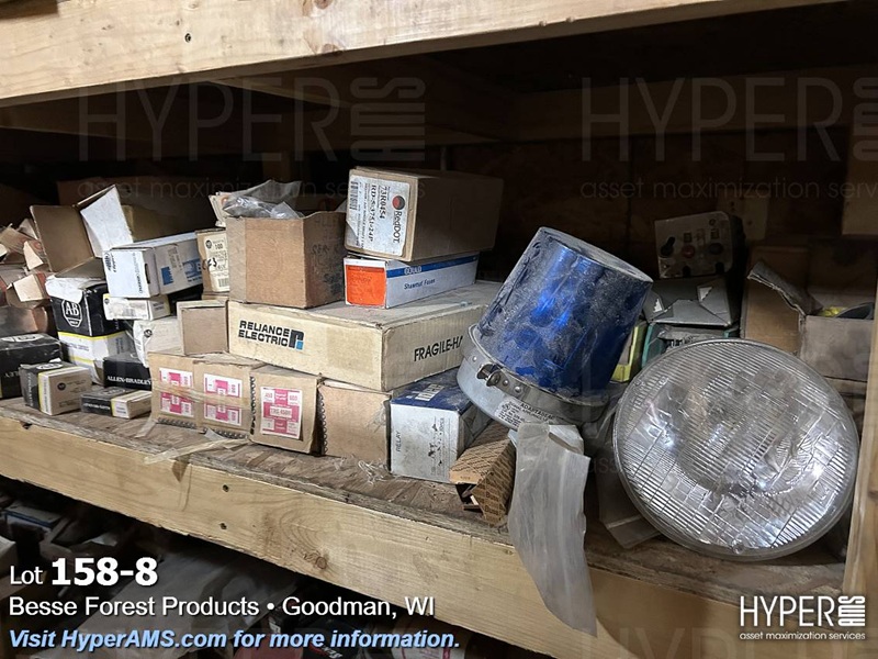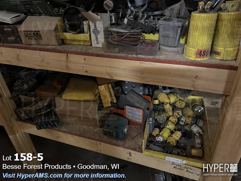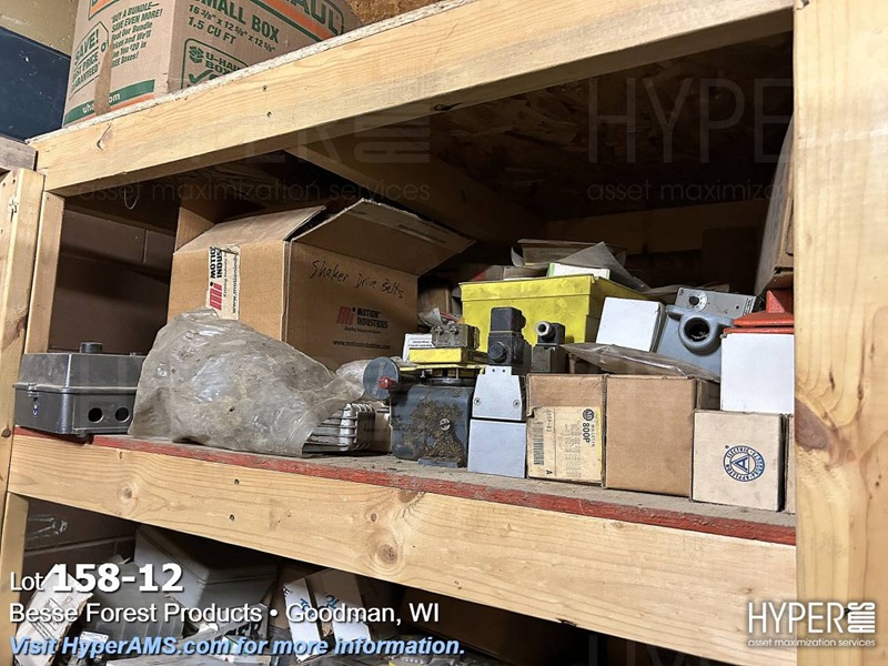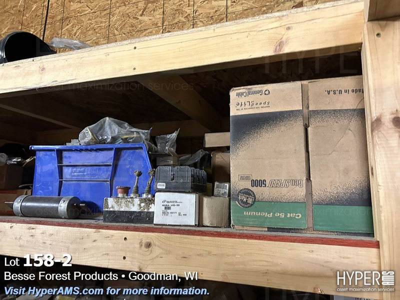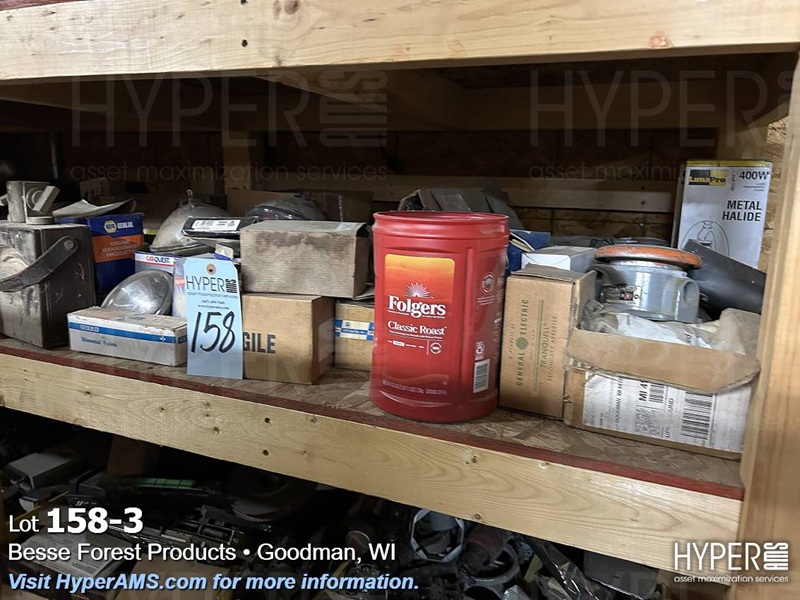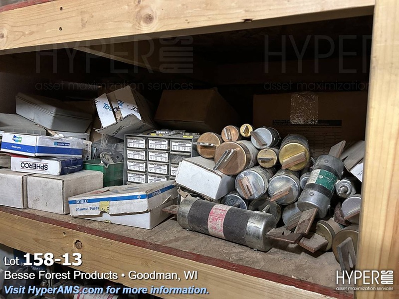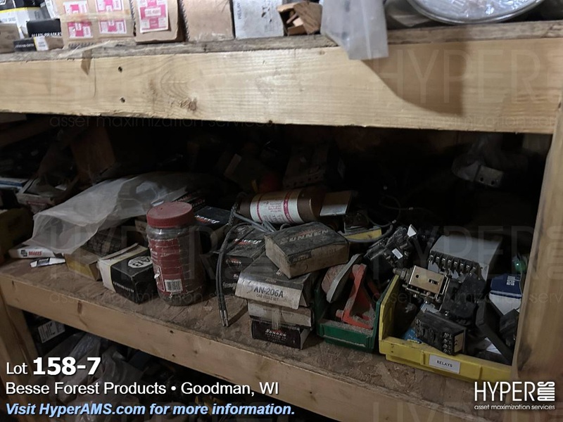 ITEMS ON THE SHELF; PLUGS, AB SWITCHES, FUSES, SUNNEN STONES, AND LIGHTS