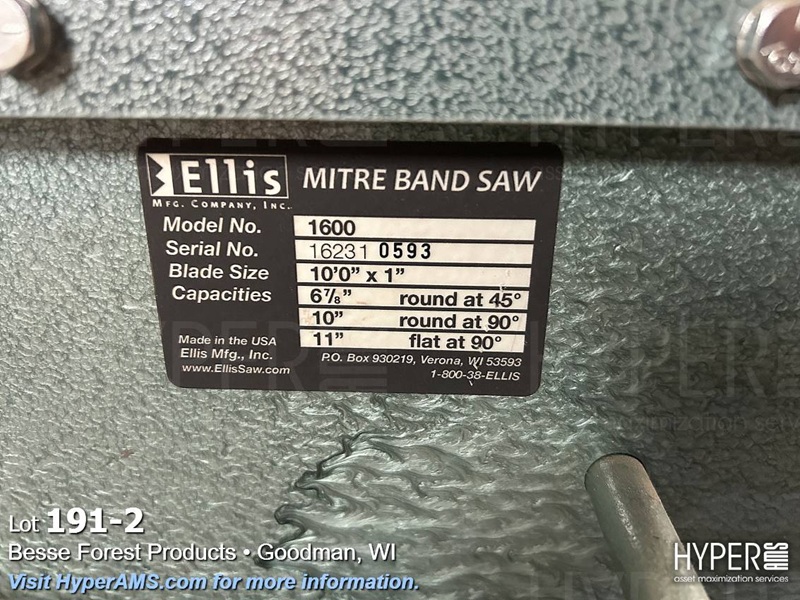 ELLIS 1600 MITER BAND SAW, 10' X 1" BLADE SIZE, S/N 162310593