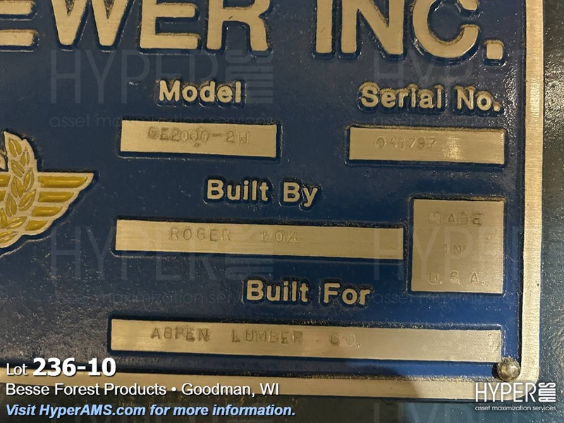 BREWER GOLDEN EAGLE 2 HEAD RESAW GE-2000 WITH INFEED MODEL GE2000-2H, S/N#041797 (OFFERED SUBJECT TO THE BULK BID ON LOT 200)