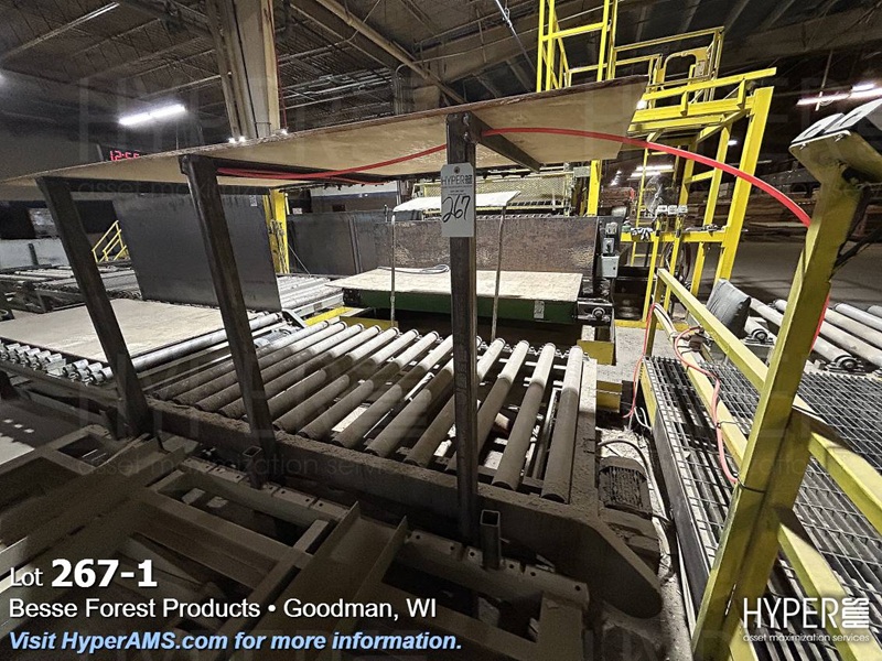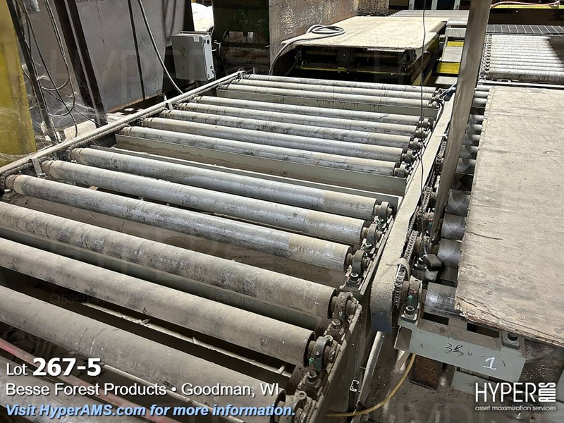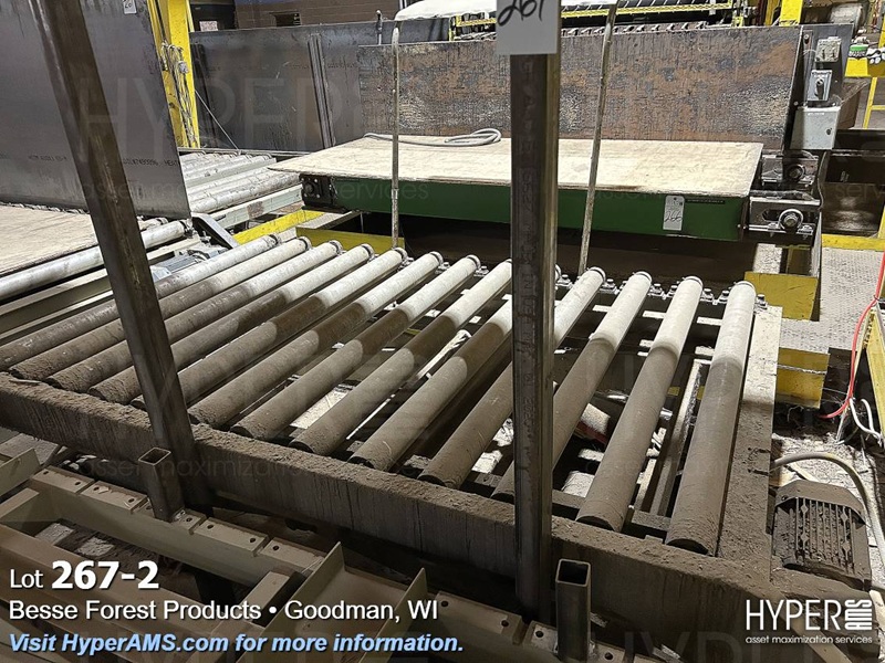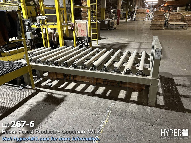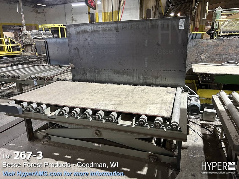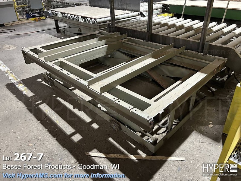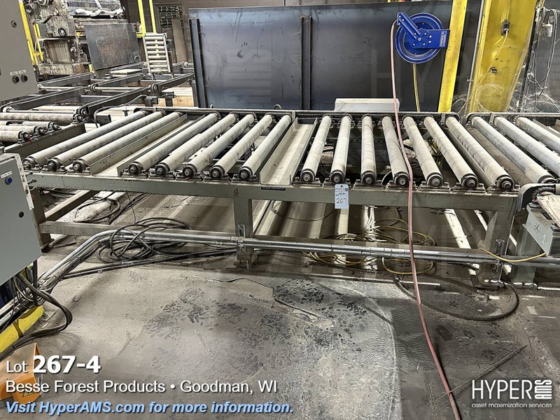 (3) SECTIONS OF POWERED ROLLER CONVEYOR (APPX. 35'), (1) SECTION OF GRAVITY FEED ROLLER CONVEYOR APPX. 9' AND SCISSOR LIFT TABLE 62" X 8' (OFFERED SUBJECT TO THE BULK BID ON LOT 261)