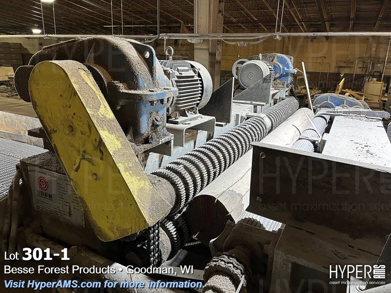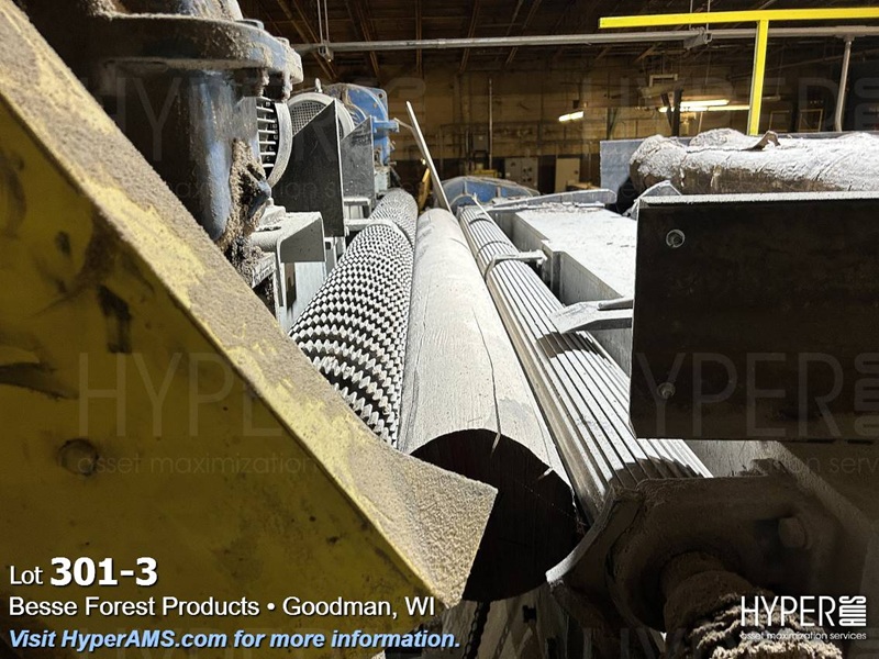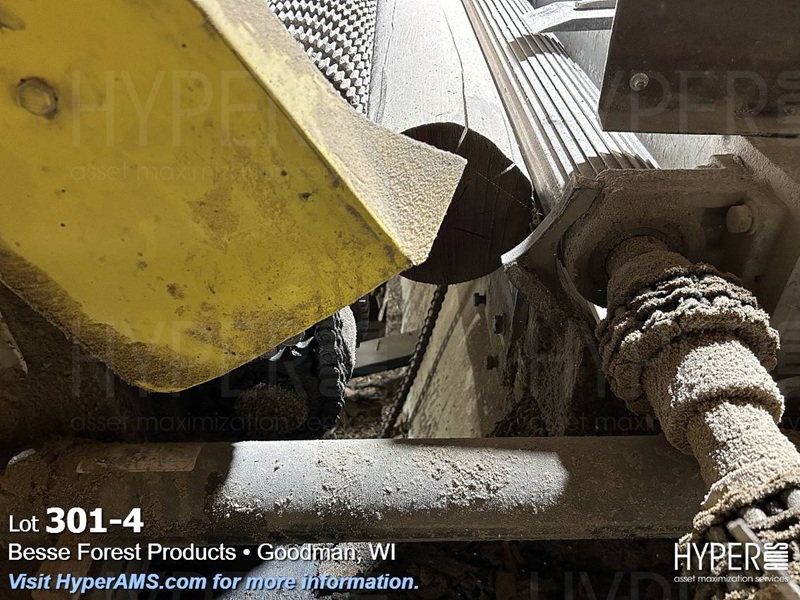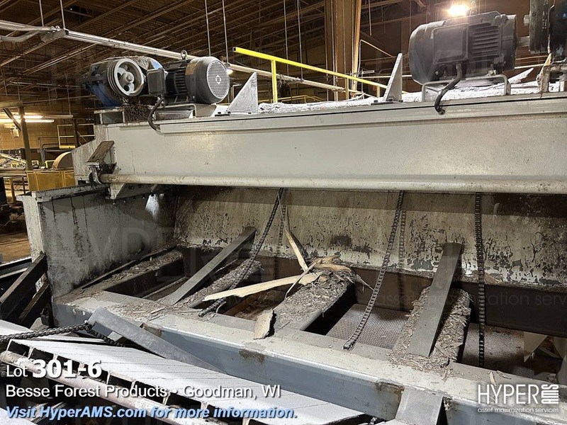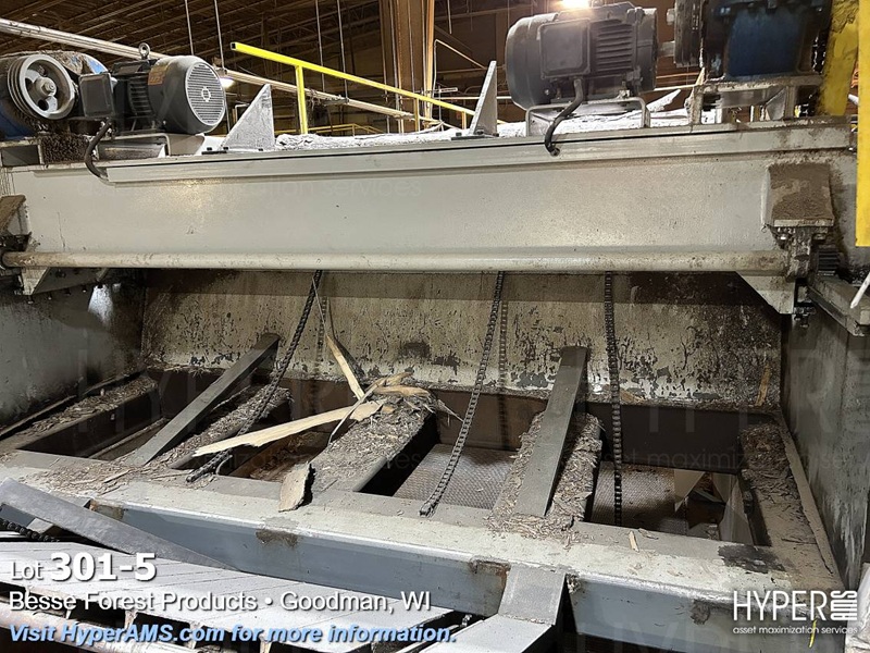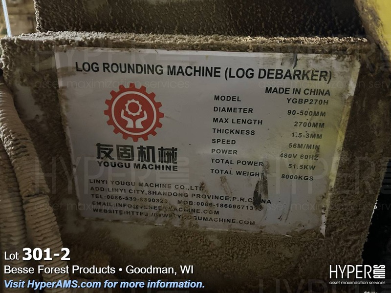 YOUGU MACHINE LOG DEBARKER MODEL YGBP270H, 90-500 MM DIA, 2700MM MAX LENGTH, WITH OUTLET, 2 CHAIN CONVEYOR 9'X 16', SINGLE CHAIN 3"X 23' (OFFERED SUBJECT TO BULK BID ON LOT 297)