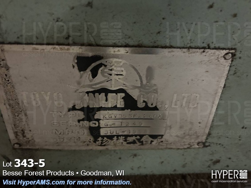 TOYO KNIFE CO. BLADE SHARPENER, TYPE KGV35SF22CDX, S/N#G1249, 1998, 141"
