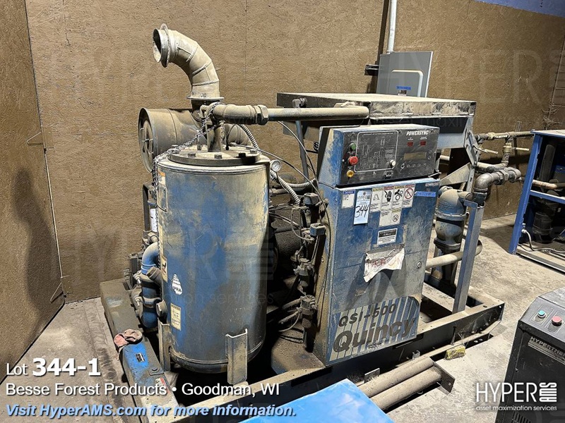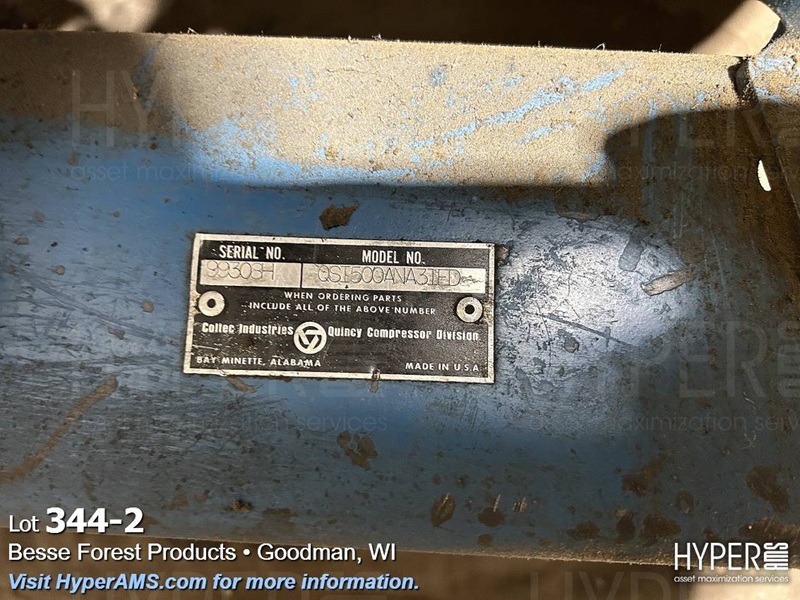QUINCY AIR COMPRESSOR QSI-500, MODEL QSI500ANA3IED, S/N#99308H, 100 HP, SHOWING 161,493 HOURS