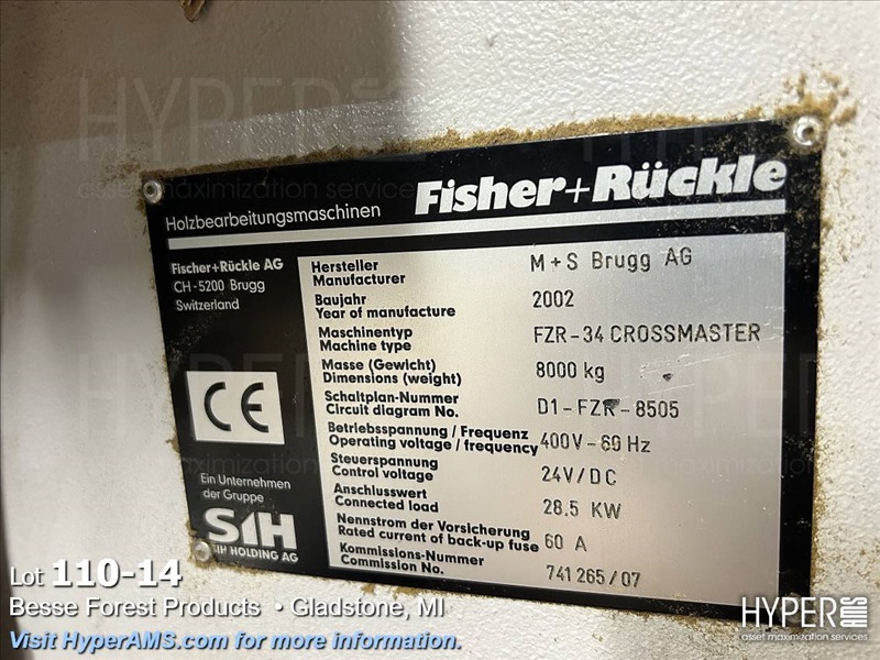 FISHER & RUCKLE FZR-34 CROSS MASTER CROSS FEED SPLICER, 132", SIEMENS CONTROL, S/N#741265/07 WITH DA-20 STACKER, 2002, WITH SCISSOR LIFT TABLE, (2) TABLES- 1-9'X16' WITH LIGHT SECTION, 1-4'X8'