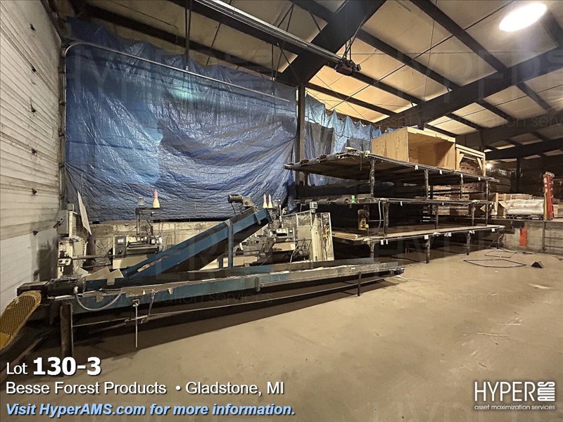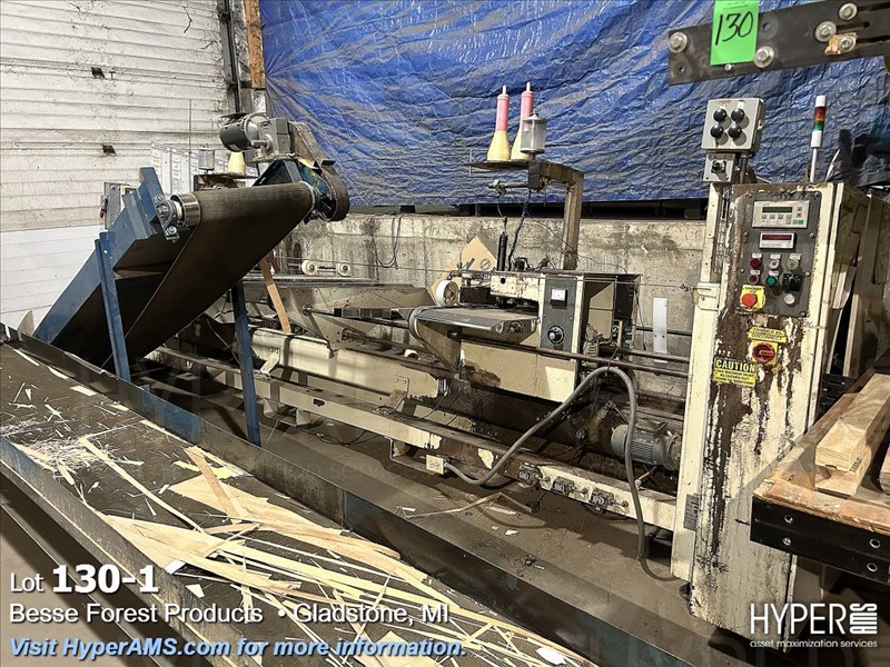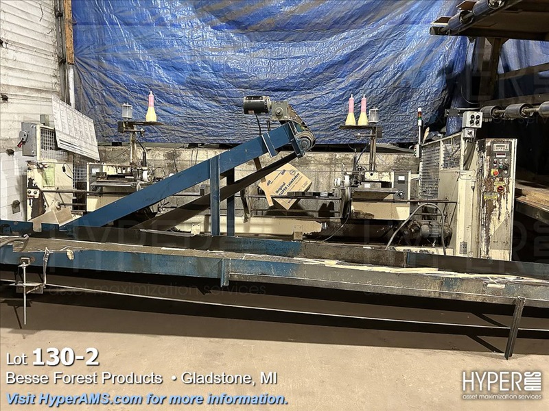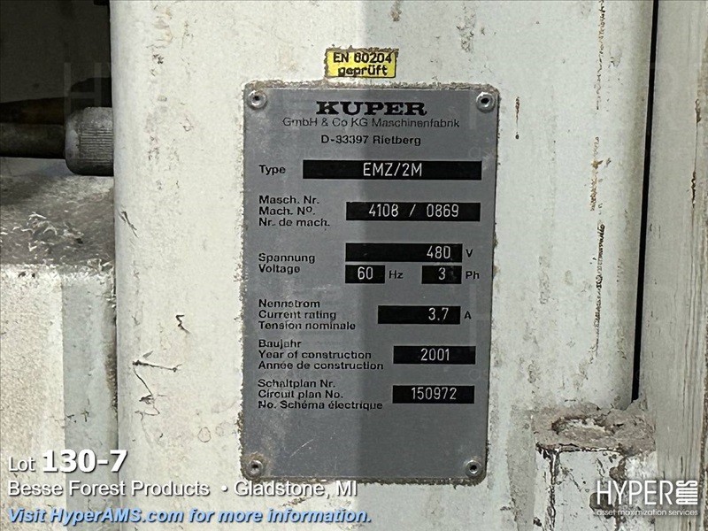 KUPER EMZ/2M DOUBLE END TRIMMER/SPLICER, APPX. 110", SIEMENS CONTROL, YEAR 2001, S/N#4108/0869 WITH (2) BELT SCRAP CONVEYORS, WITH GRADING TABLE, APPX. 80' LONG