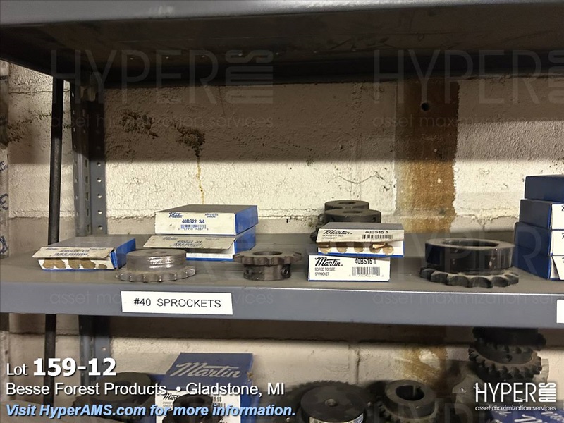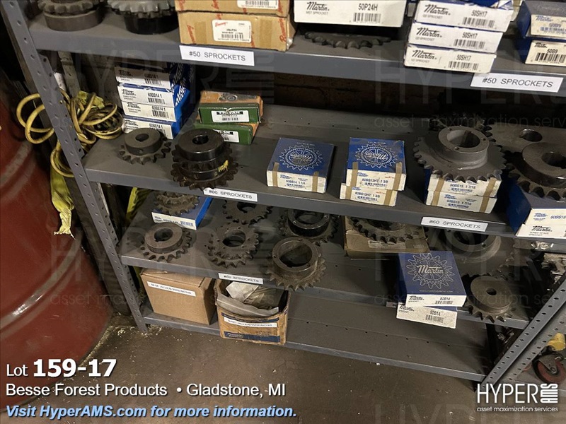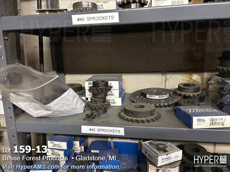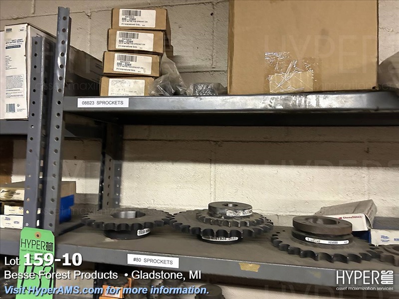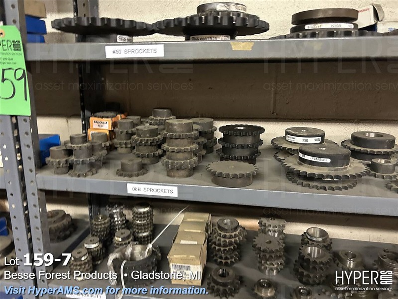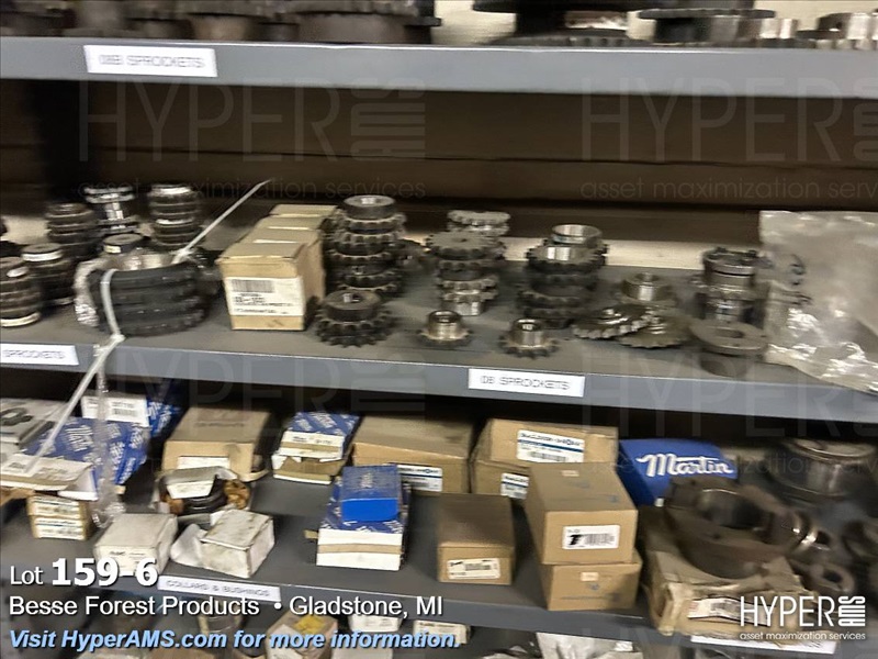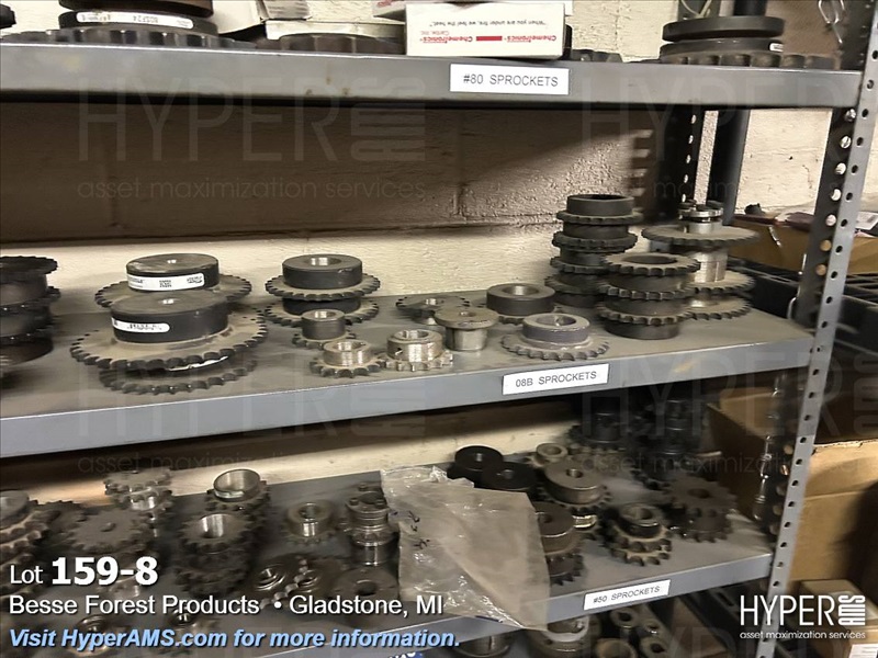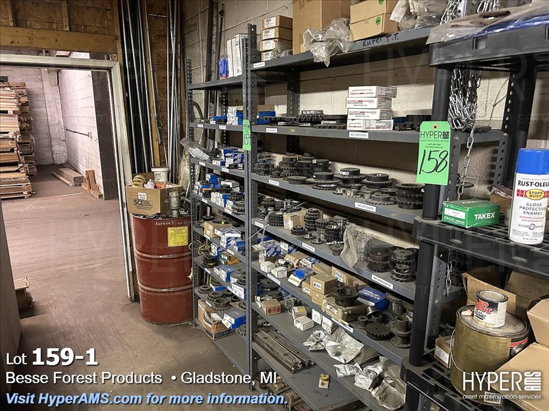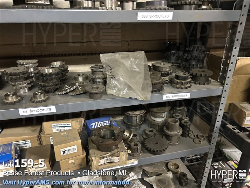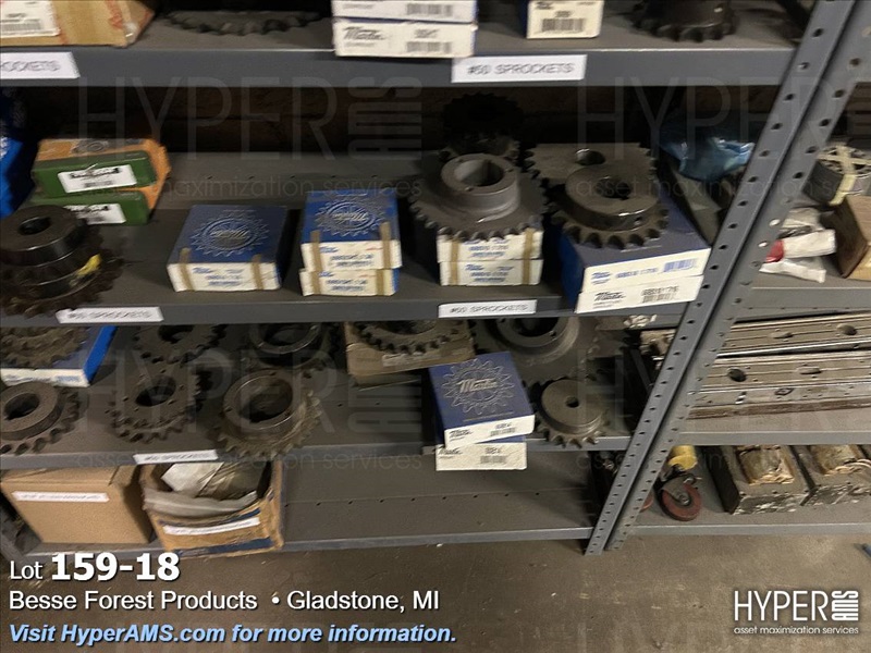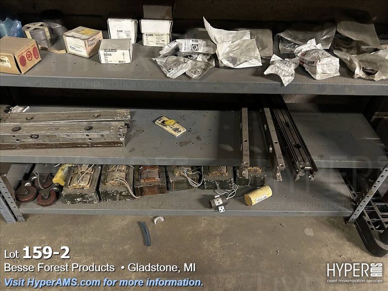 (2) METAL SHELF UNITS (12"X36" & 12"X48") WITH CONTENTS-SPROCKETS, TRANSFORMERS