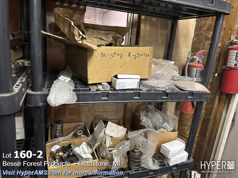 BLACK SHELF UNIT 18"X36"X6' WITH CONTENTS-MISTING RINGS AND TIPS, ETC.