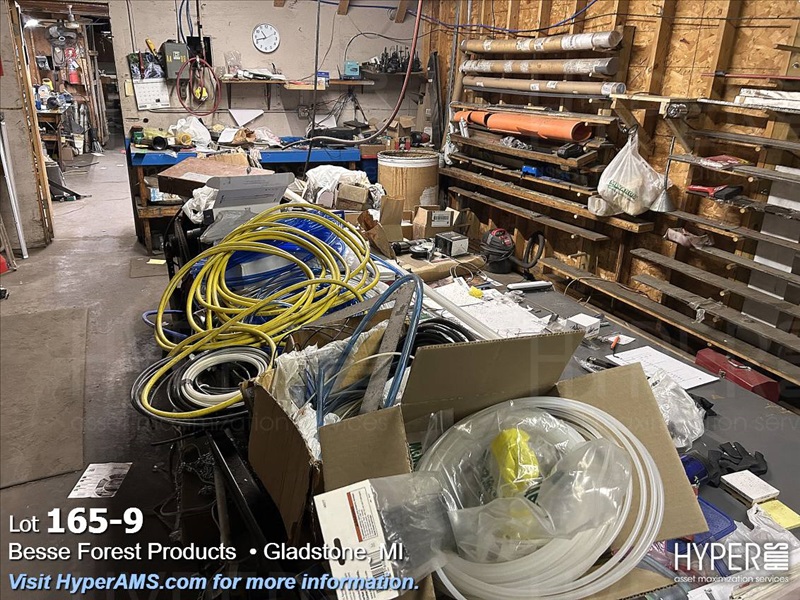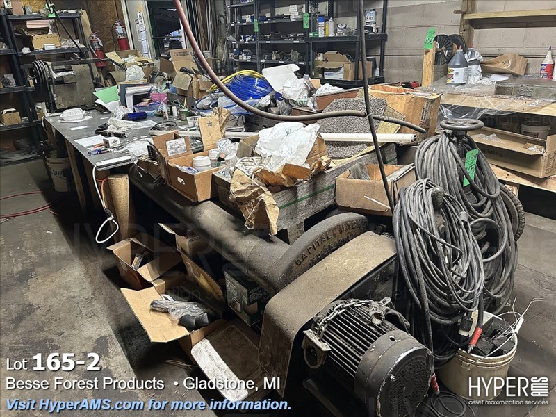 CAPITOL MACHINE BLADE SHARPENER (APPX. 15", NOT OPERATING) AND CONTENT IN MIDDLE OF ROOM-HOSES, LIGHTS, CORDS, FASTENERS, ETC.