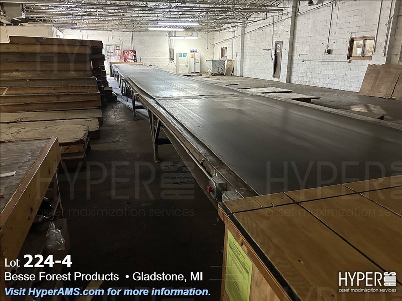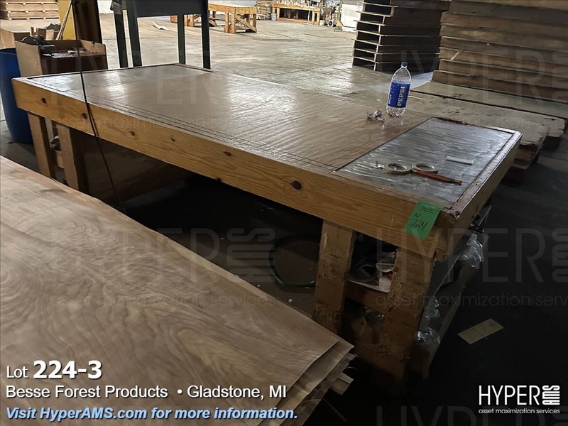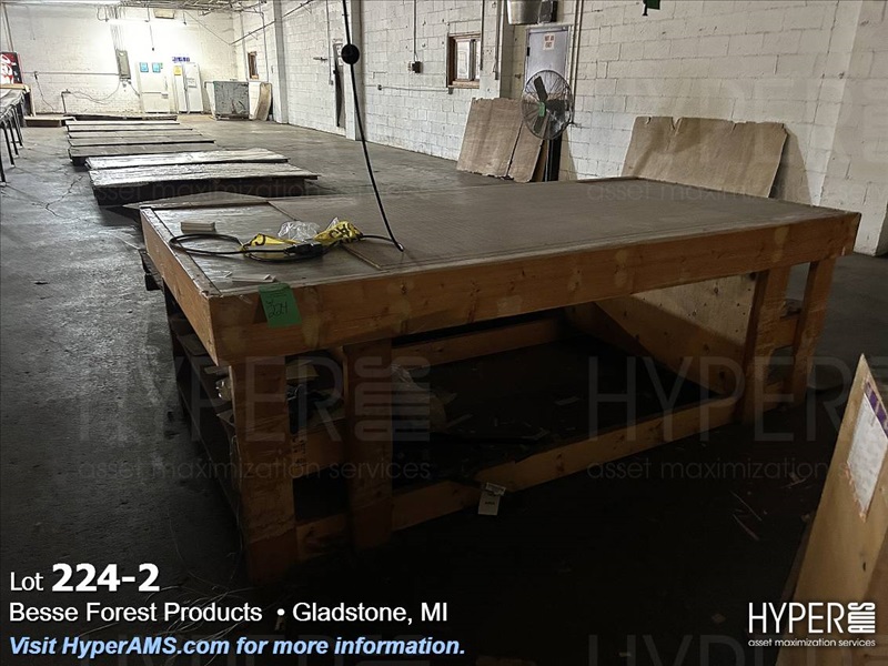 BELT LINE TABLE 7'XAPPX. 90', (2) WOOD TABLES 54"X106", SCISSOR LIFT 42"X8'