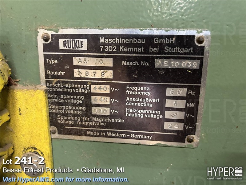 RUCKLE TYPE AS10 TRIMMER, 44", MACHINE #AS10039, 440/60, (2) TABLES (6'X11' & 50"X9')