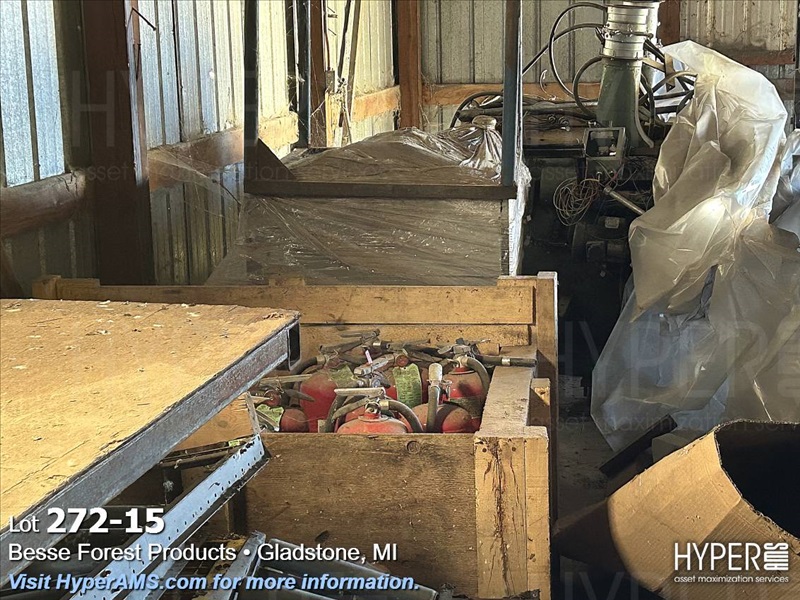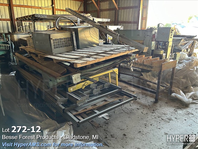 BALANCE OF ROOM-BANDER, 2 TABLES, RACKING, CONVEYOR,TRANSFORMERS,HYD UNITS,LIFT TABLES,CONVEYOR BELT,FIRE EXTINGUSHERS, ETC.