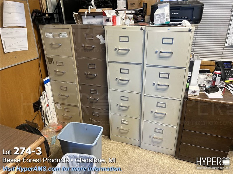 OFFICE SUITE CONSISTING OF 3 DESK, 3 CHAIRS, 5 FOUR DRAWER FILING CABINETS