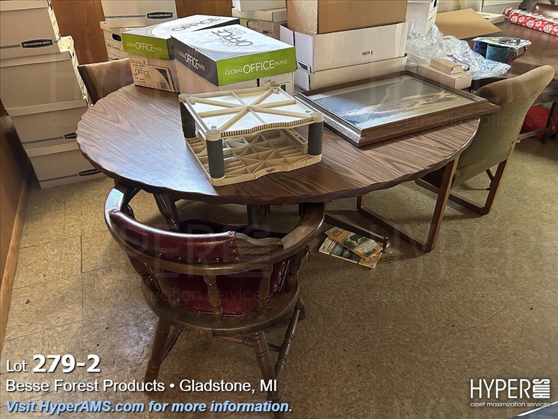 2 ROUND TABLES 5', AND CHAIRS