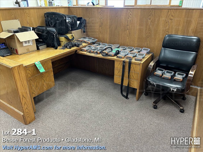 DESK WITH RIGHT HAND RETURN, AND CHAIR