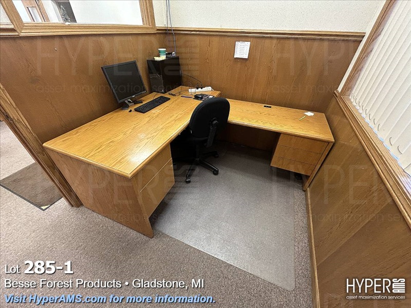DESK WITH LEFT HAND RETURN, AND CHAIR