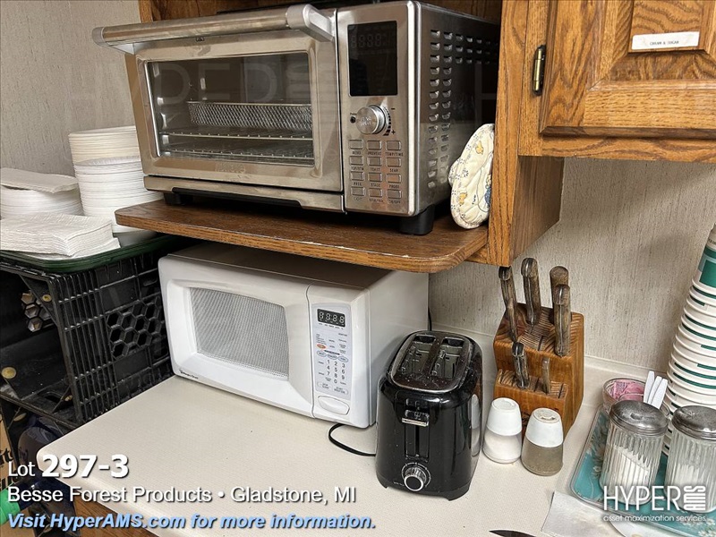 REFRIGERATOR, COFFEE MAKER, TOASTER OVEN, MICROWAVE, AND 39" PICNIC BENCH