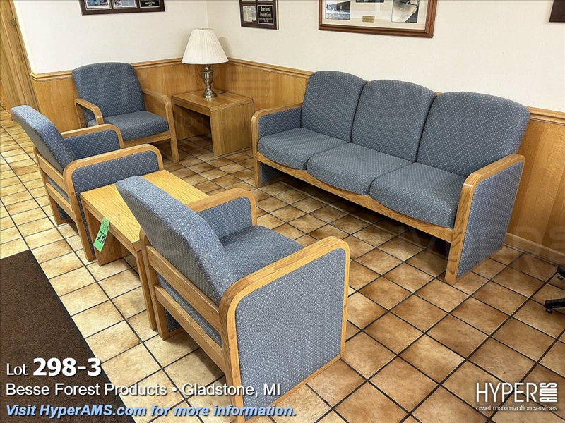 COUCH, THREE CHAIRS, 2 SIDE TABLE, AND LAMP