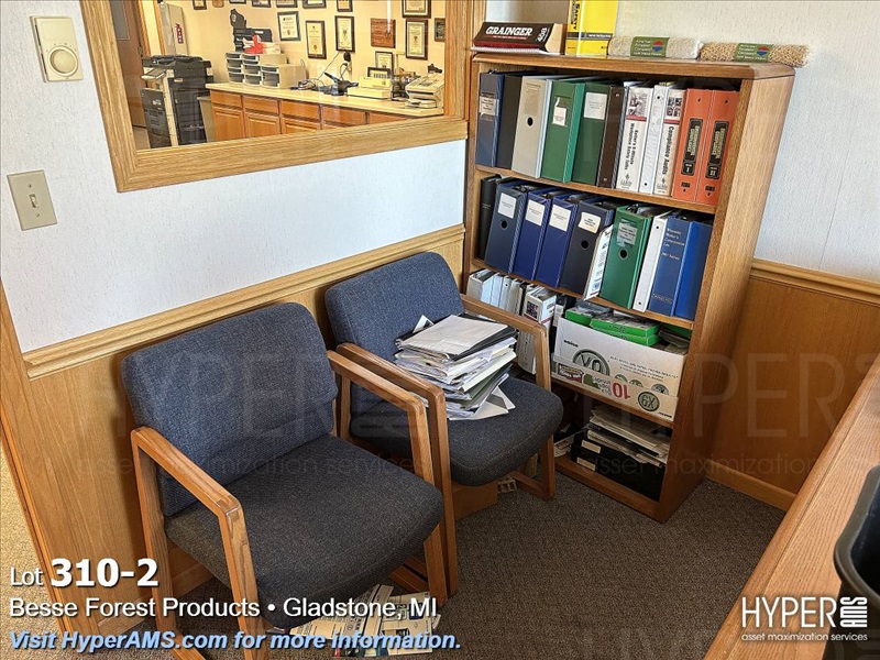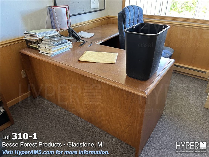 WOOD DESK WITH RIGHT-HAND RETURN, 2 FILE CABINET, BOOK SHELF,AND CHAIRS
