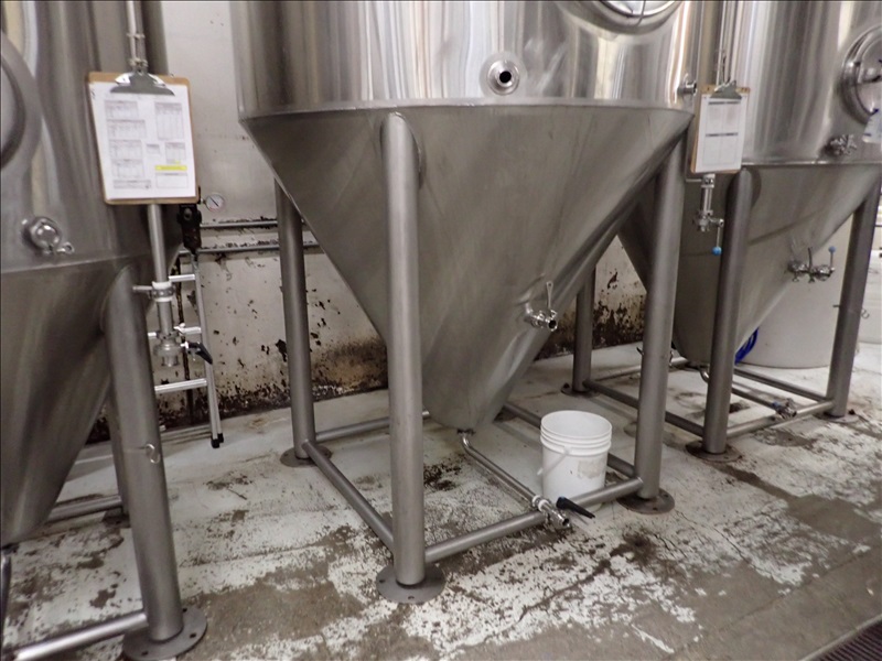 APPROX. 45 BARREL S/S JACKETED FERMENTATION TANK, RANCO ETC, FRONT GATE, ADJUSTABLE HEIGHT LEGS