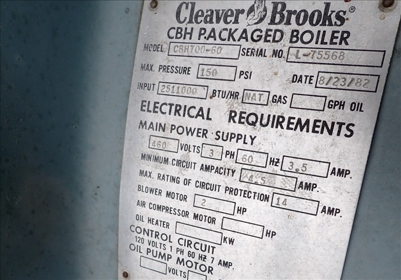 2,511,000 BTU SKID MOUNTED NATURAL GAS STEAM BOILER, S/N:L-75568