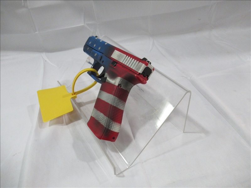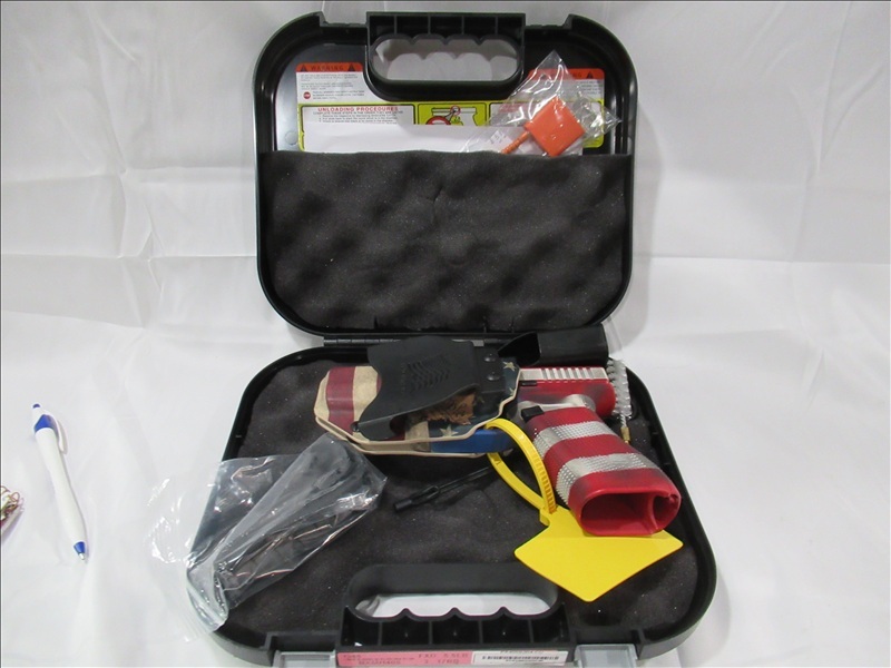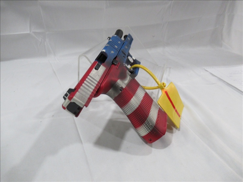9MM SEMI-AUTO CERAKOTED PISTOL W/4" BARREL, GRIP EXTENSION, WE THE PEOPLE OWB HOLSTER & CASE (UNUSED, NO MAGS)