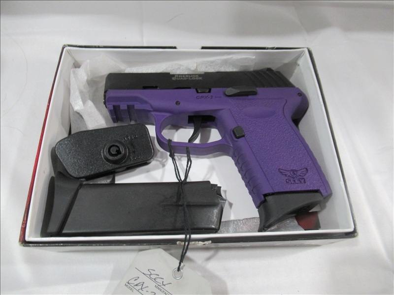 9MM PURPLE SEMI-AUTO PISTOL, ROEBUCK QUAD-LOCK, (2) 10-RND MAGAZINES & BOX (UNUSED)