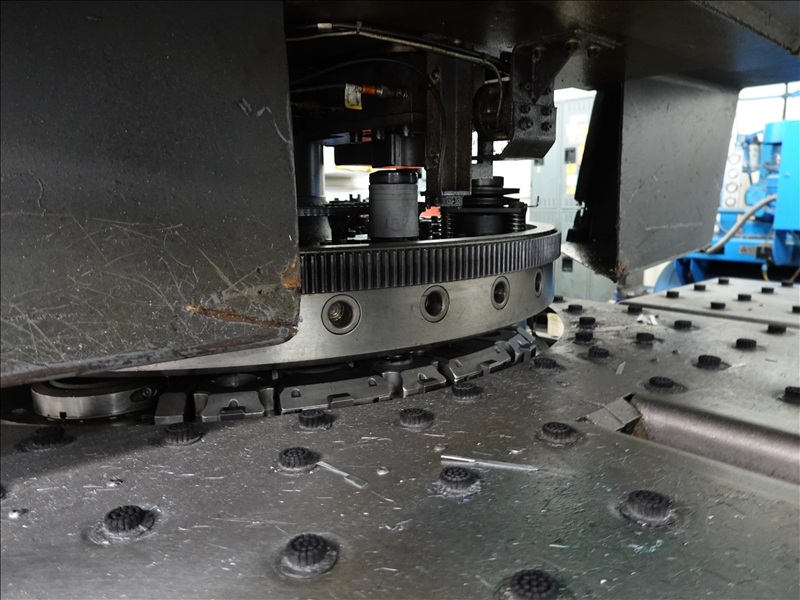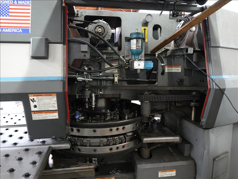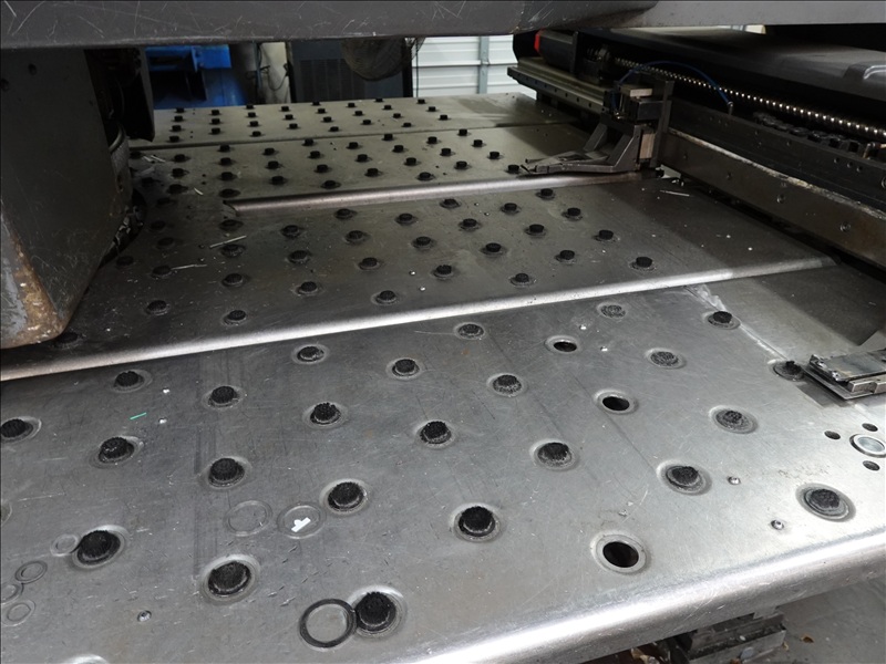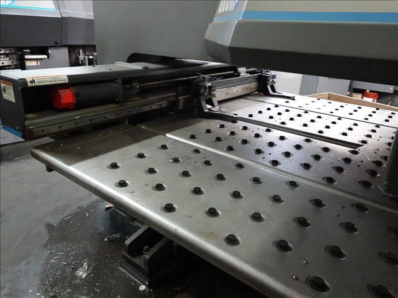 30 TON CAP. CNC TURRET PUNCH PRESS, 7' AIR TABLE, SHEET FEEDER, GE FANUC SERIES O-P CONTROLS, TOOLING