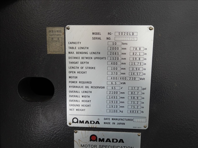 55 TON X 79" CNC PRESS BRAKE, BACK GAUGE, LD CONTROLS