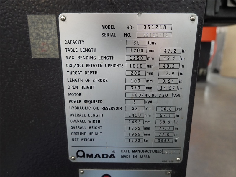 38 TON X 48" CNC PRESS BRAKE, BACK GAUGE, LD CONTROLS, FOOT CONTROLS