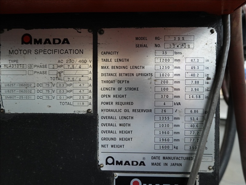 35 TON X 47" CNC PRESS BRAKE, NC9-EX11 BACK GAUGE, LASER PRESS BRAKE GUARD, FOOT CONTROLS