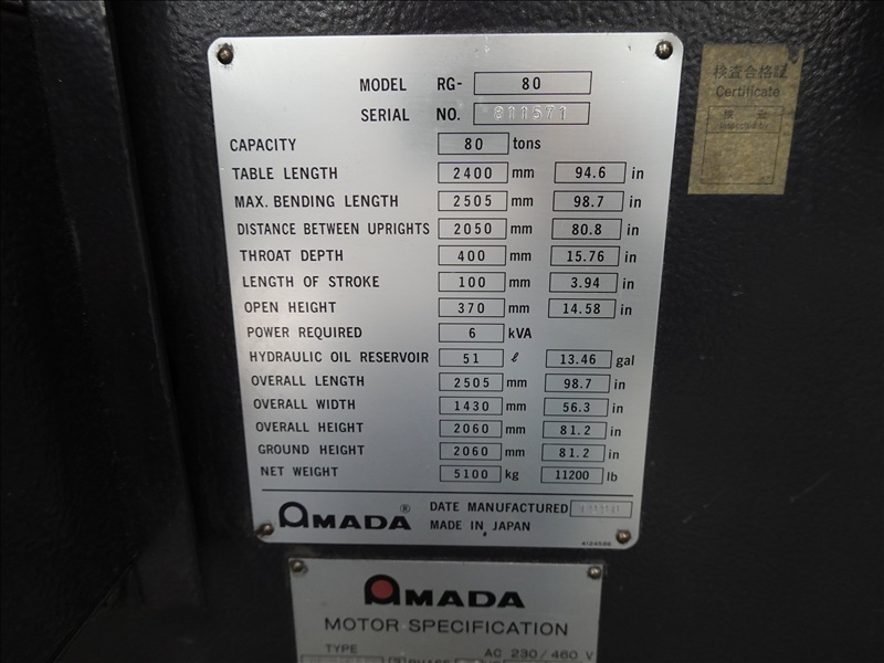88 TON X 95" CNC PRESS BRAKE, BACK GAUGE, NC9-EXII CONTROLS