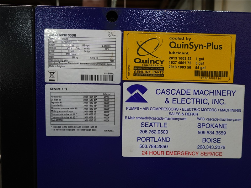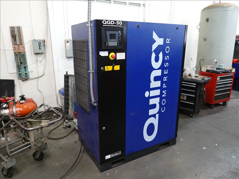 50 HP ROTARY SCREW AIR COMPRESSOR, AIRLOGIC 2 CONTROLS W/QPNC250 AIR DRYER & VERTICAL RECEIVER TANK