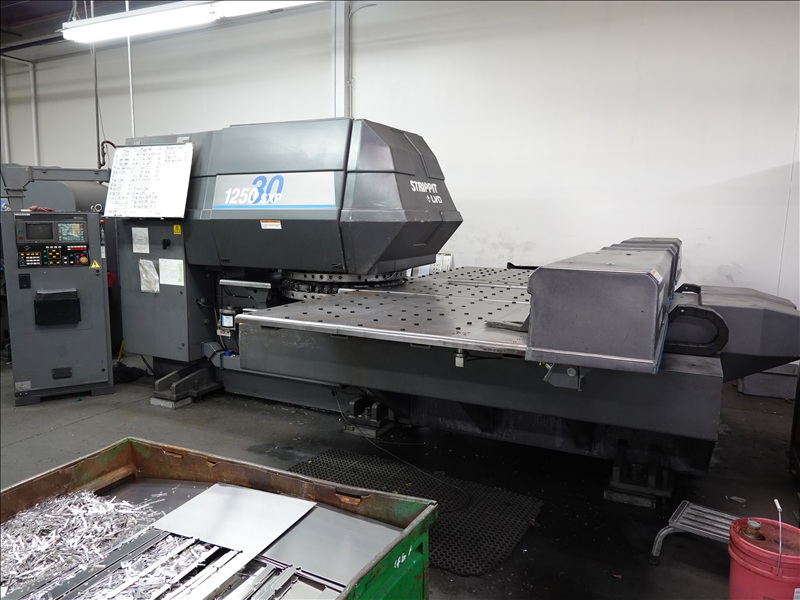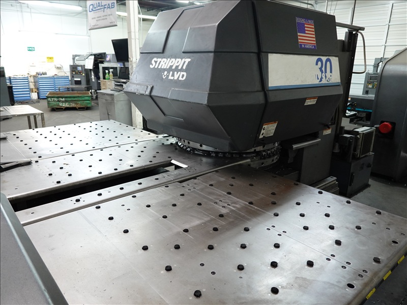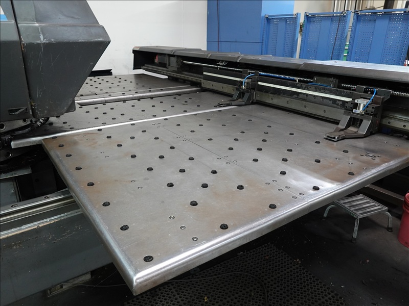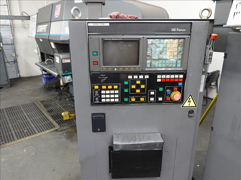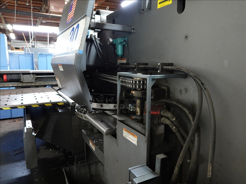 30 TON CAP. CNC TURRET PUNCH PRESS, 12' AIR TABLE, SHEET FEEDER, GE FANUC SERIES O-P CONTROLS
