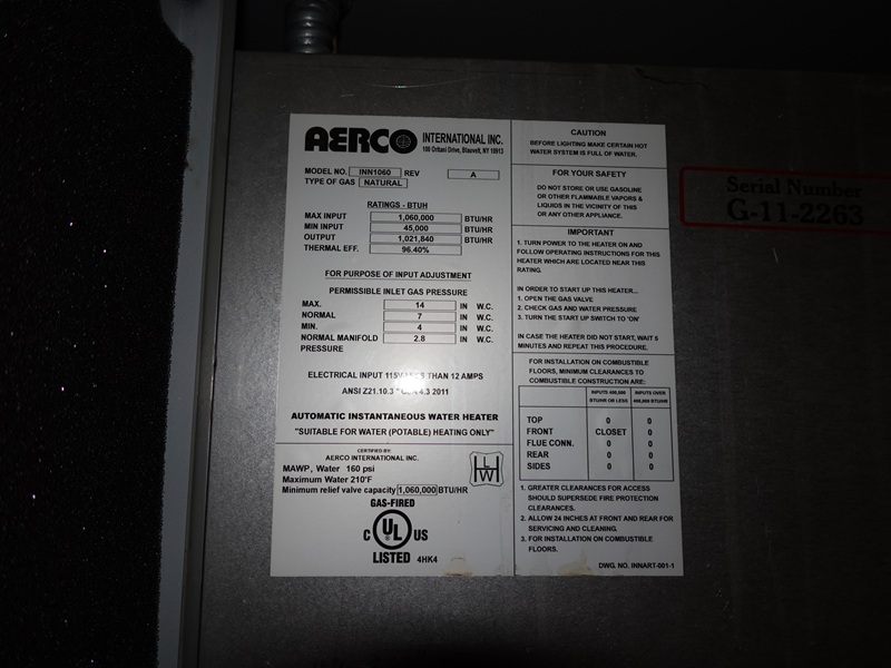 HIGH EFFICENCY NATURAL GAS WATER HEATER, DIGITAL CONTROLS, 1,060,000 BTU MAX