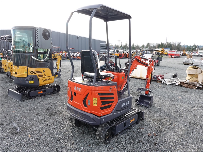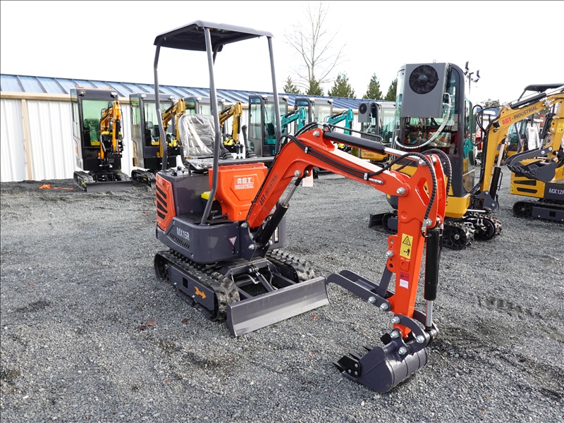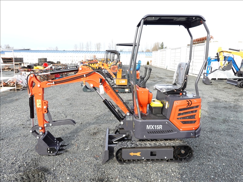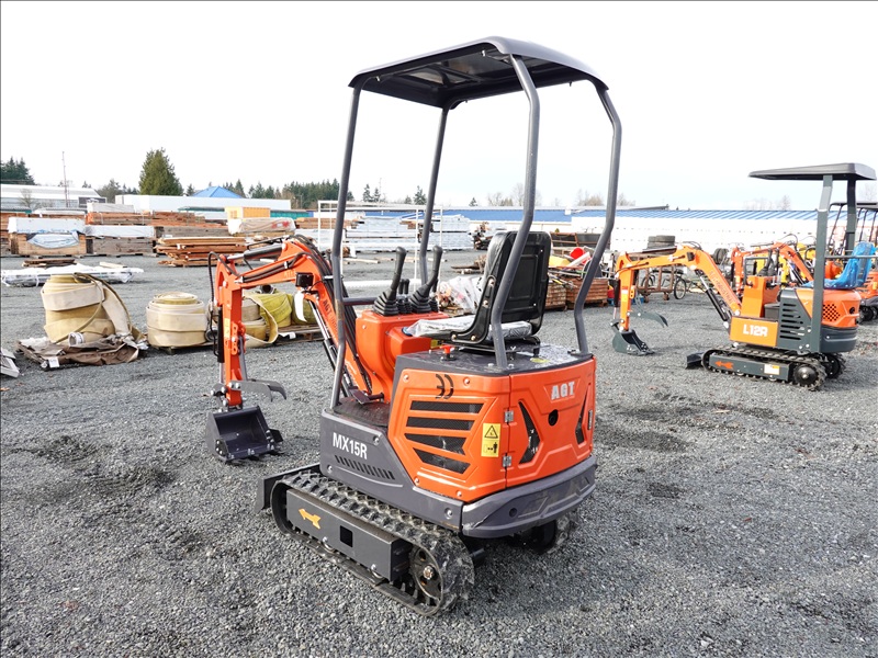 MINI EXCAVATOR, RATO 15 1 CYL GAS, 13" BUCKET, THUMB, BLADE, RUBBER TRACKS, CANOPY