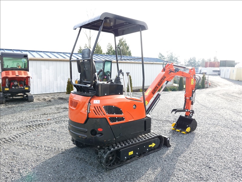 MINI EXCAVATOR, KUBOTA 3 CYL DIESEL, SWING BOOM, 15" BUCKET, THUMB, BLADE, RUBBER TRACKS, CANOPY