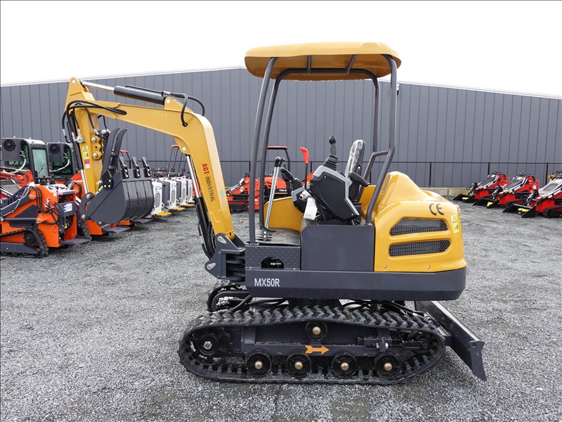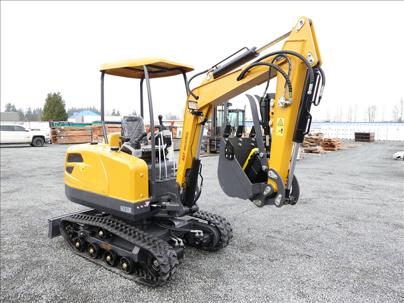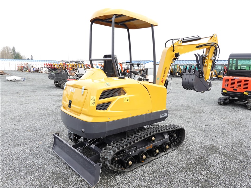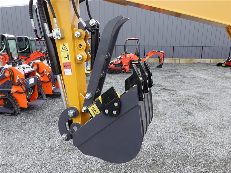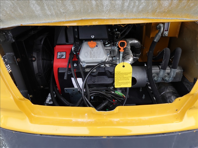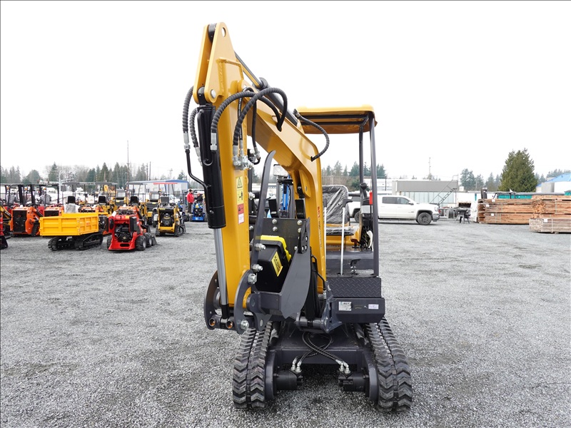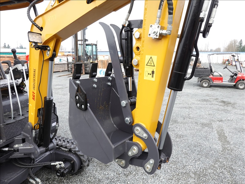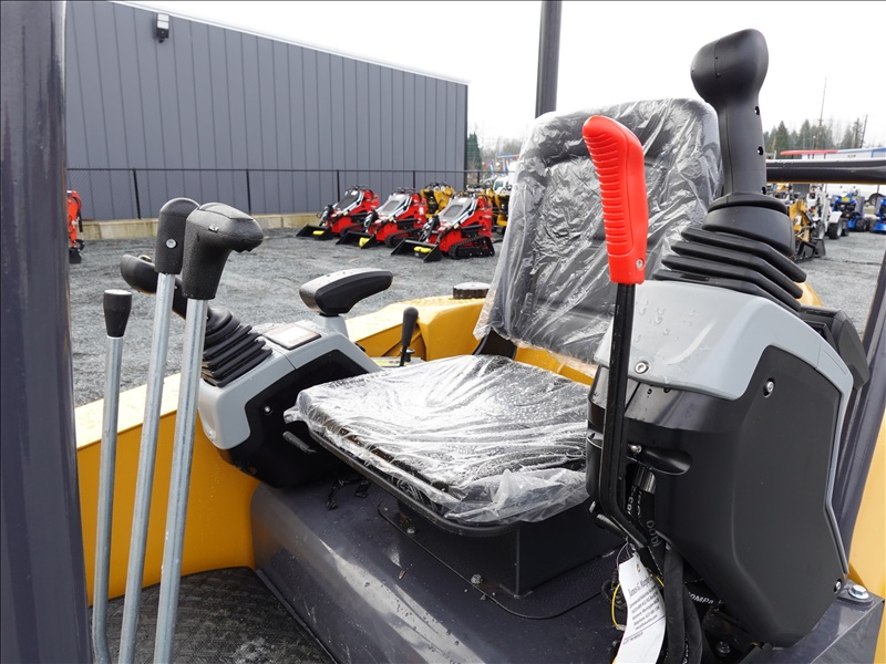 MINI EXCAVATOR, RATO R825 2 CYL GAS, SWING BOOM, 15" BUCKET, HYD THUMB, BLADE, RUBBER TRACKS, CAB