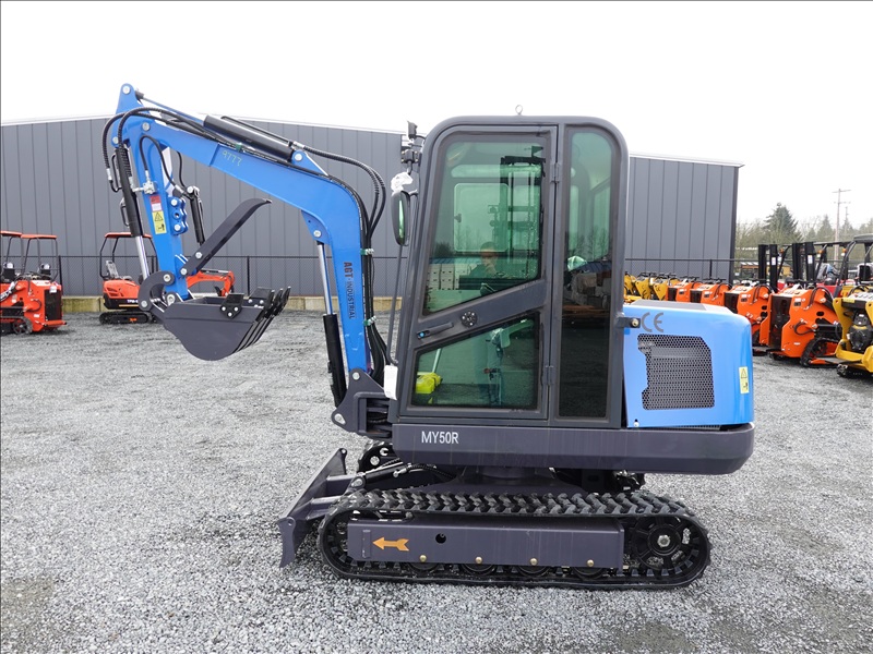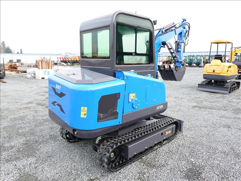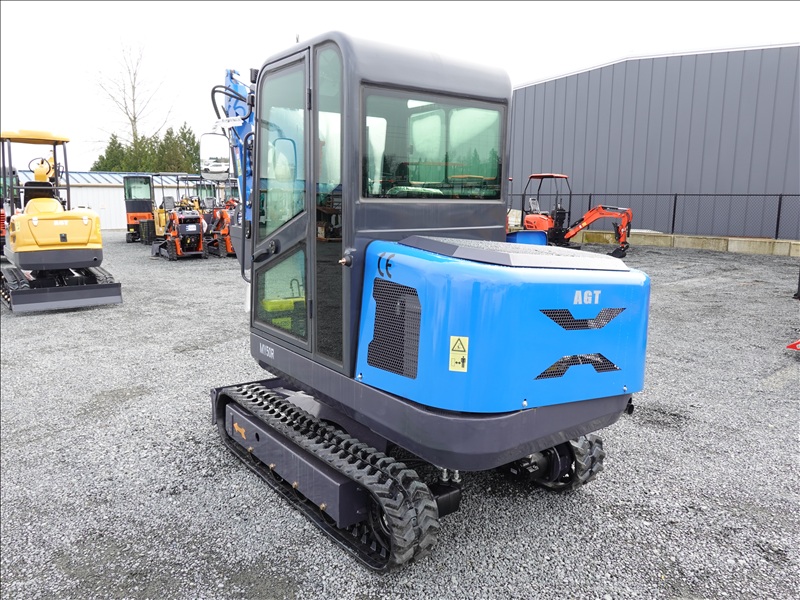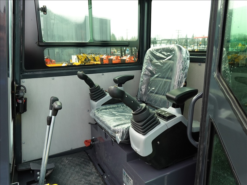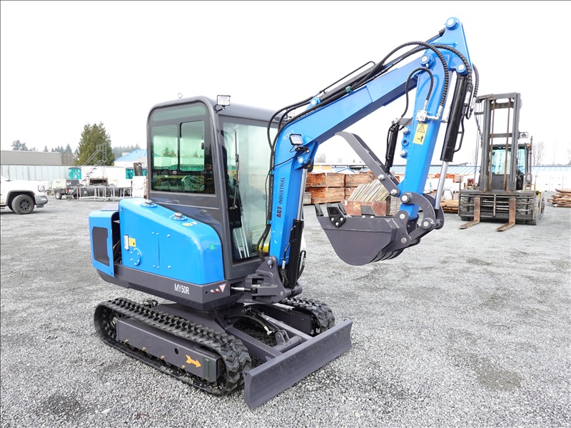 MINI EXCAVATOR, RATO R825 2 CYL GAS, SWING BOOM, 15" BUCKET, HYD THUMB, BLADE, RUBBER TRACKS, CAB