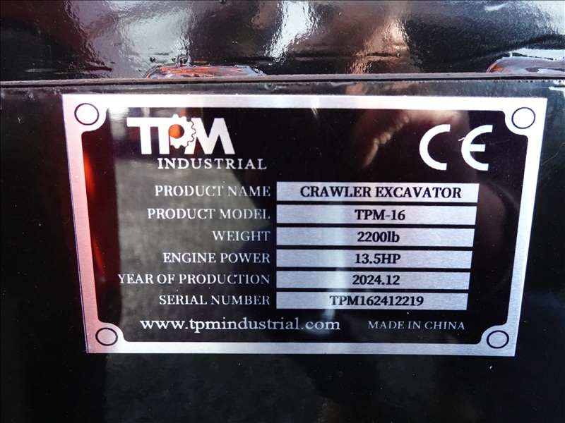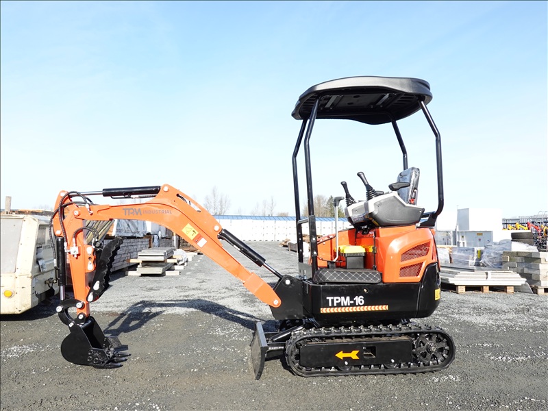 MINI EXCAVATOR, BRIGGS & STRATTON 13.5 HP GAS, 14" BUCKET, HYD THUMB, BLADE, RUBBER TRACKS, CANOPY