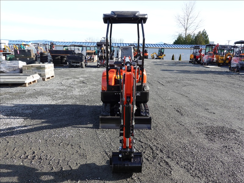 MINI EXCAVATOR, BRIGGS & STRATTON 13.5 HP GAS, 14" BUCKET, HYD THUMB, BLADE, RUBBER TRACKS, CANOPY