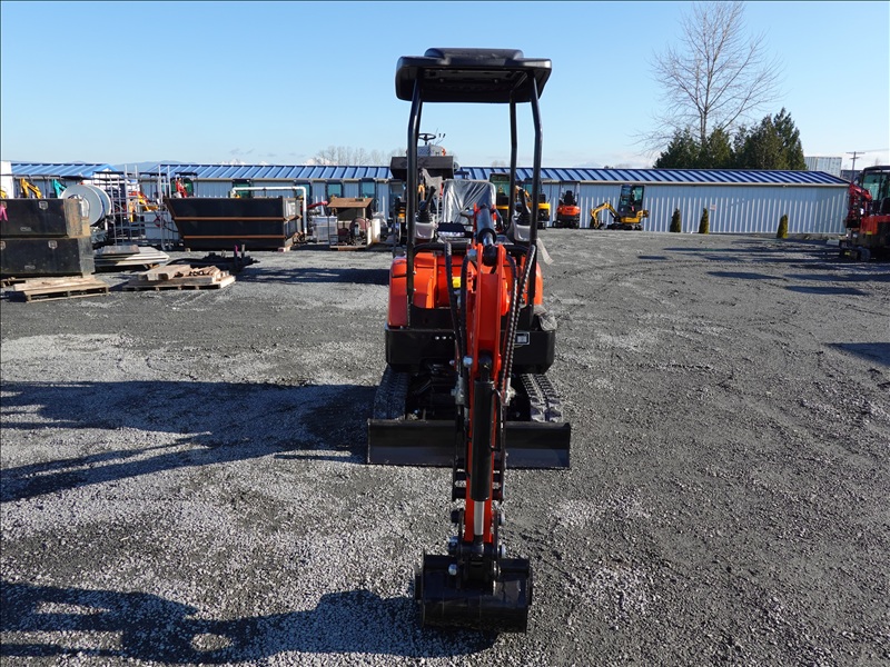 MINI EXCAVATOR, KUBOTA D722 DIESEL, SWING BOOM, 14" BUCKET, HYD THUMB, BLADE, RUBBER TRACKS, CANOPY