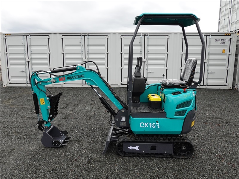 MINI EXCAVATOR, RATO 15 1 CYL GAS, 13" BUCKET, THUMB, BLADE, RUBBER TRACKS, CANOPY (CHOKE CABLE NEEDS REPAIR)