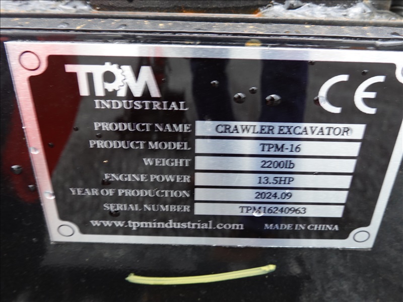 MINI EXCAVATOR, 13.5 HP BRIGGS & STRATTON 1 CYL GAS, 13" BUCKET, THUMB, BLADE, RUBBER TRACKS, CANOPY