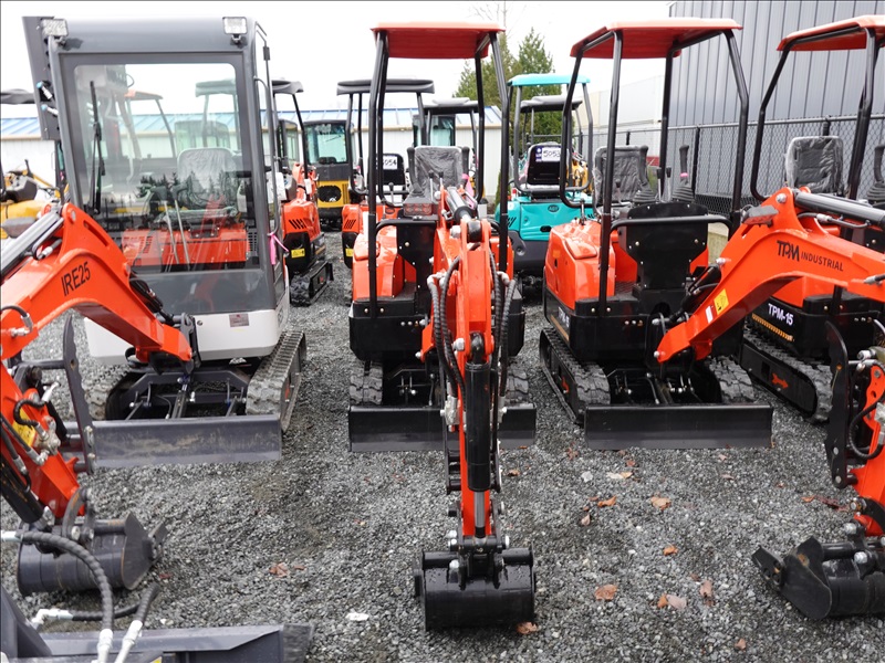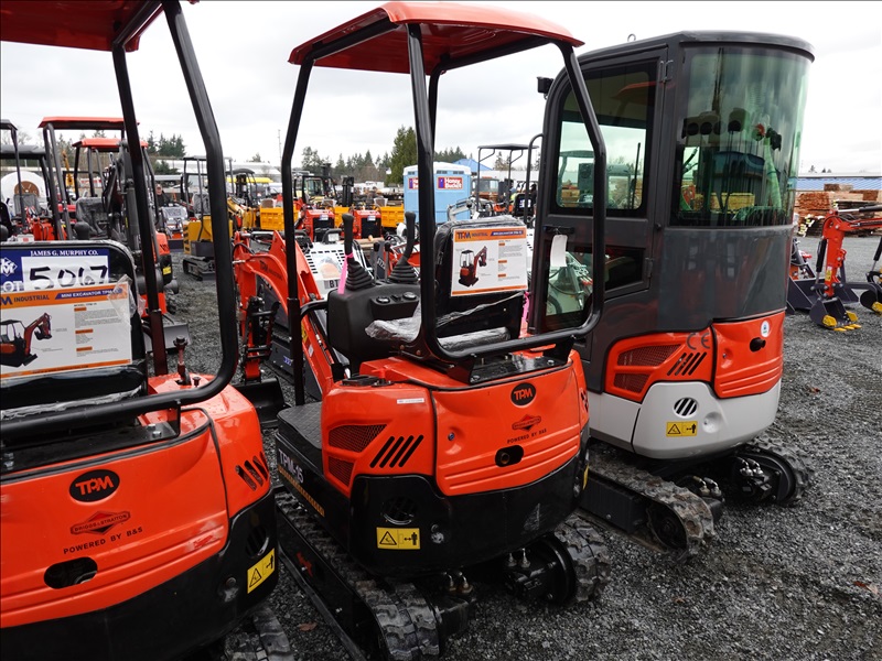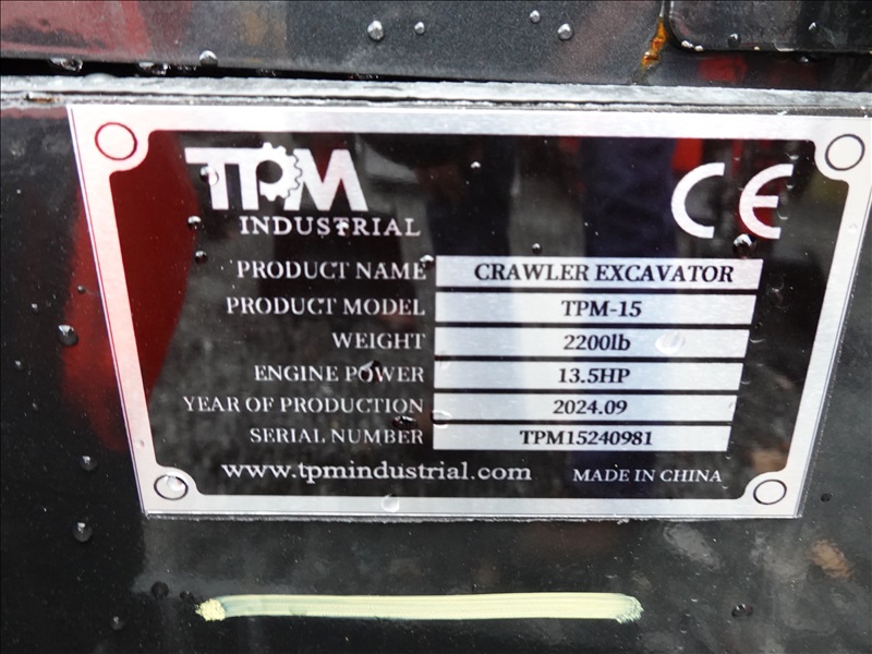 MINI EXCAVATOR, 13.5 HP BRIGGS & STRATTON 1 CYL GAS, 14" BUCKET, HYD THUMB, BLADE, RUBBER TRACKS, CANOPY