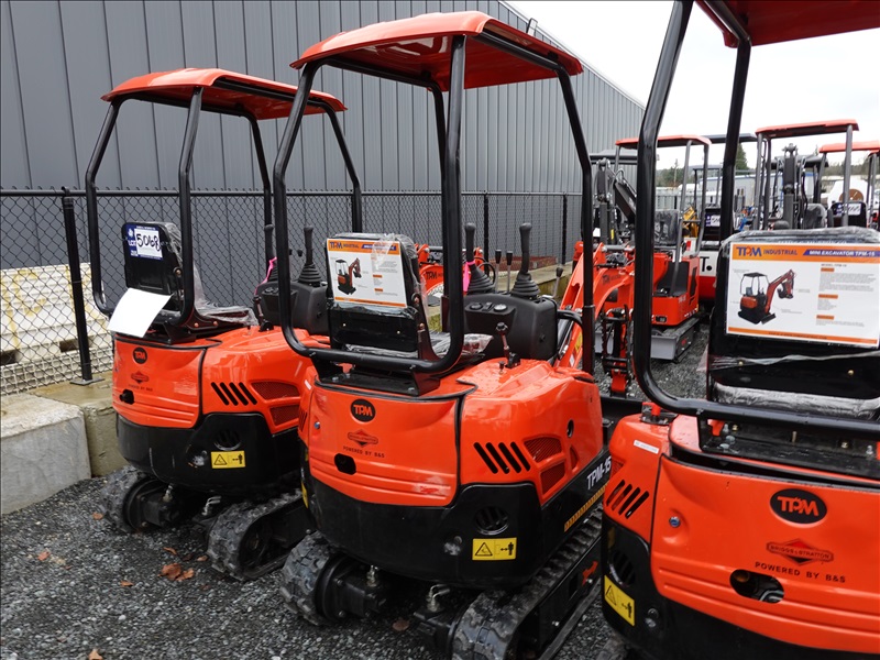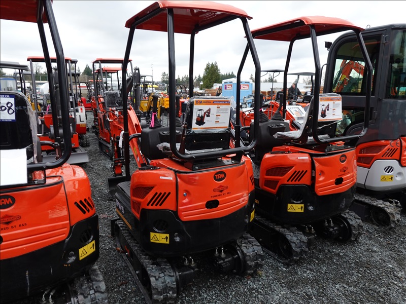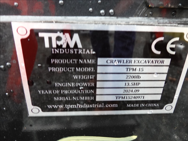MINI EXCAVATOR, 13.5 HP BRIGGS & STRATTON 1 CYL GAS, 14" BUCKET, HYD THUMB, BLADE, RUBBER TRACKS, CANOPY
